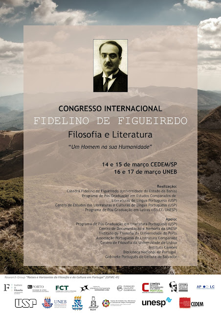 Na sequência do CONGRESSO INTERNACIONAL DE LÍNGUA PORTUGUESA: FILOSOFIA E POESIA, iniciado no Brasil (Universidade de São Paulo, 9-12 de Dezembro de 2014) e concretizado em Portugal (Universidade do Porto, 13-14 de Abril de 2015, e Universidade Nova de Lisboa, 15 de Abril), que mereceu o apoio da Fundação Calouste Gulbenkian, vimos agora anunciar um novo projecto, também de diálogo entre FILOSOFIA E LITERATURA, mas agora mais centrado numa obra em particular: a de Fidelino de Figueiredo.